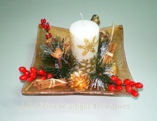 Prato c/ craquelé e vela decorada c/ guardanapo